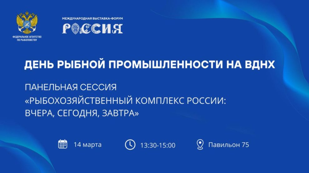 На площадке выставки-форума «Россия» 14 марта пройдет День рыбной промышленности. Центральным мероприятием станет панельная сессия «Рыбохозяйственный комплекс России: вчера, сегодня, завтра».