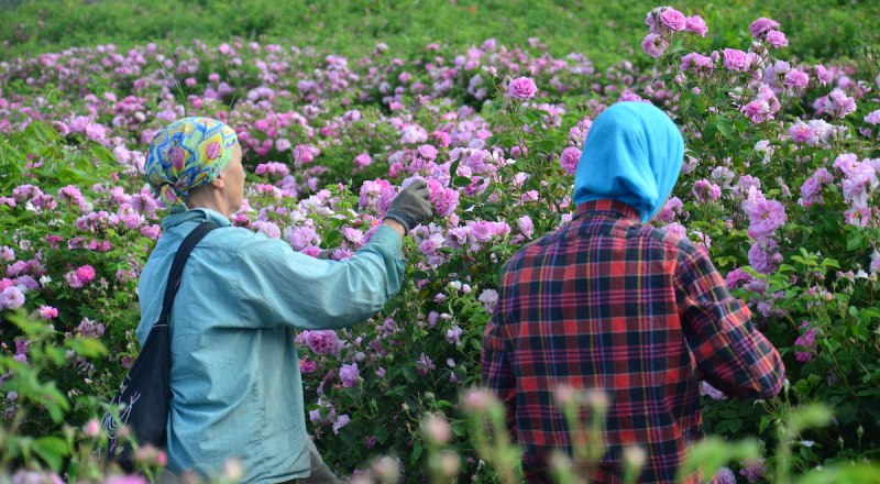 Обилие дождей в мае благоприятно повлияло на урожайность розы в этом году. Эфироносную культуру собирают рано утром, на рассвете, когда содержание масла в лепестках наиболее высокое. Когда солнце поднимается выше, цветы подсушиваются и теряют часть эфиров. Кроме того, в ранний утренний час проще работать: бутоны ещё крепко держат форму и их легче срывать.