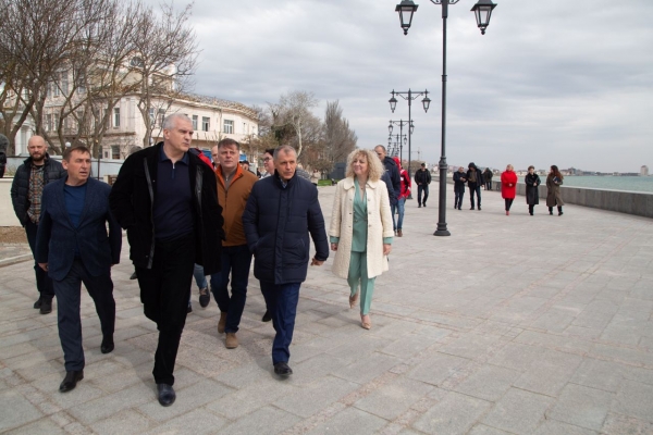 Новую общественную территорию осмотрели Глава Республики Крым Сергей Аксенов и Председатель Государственного Совета Республики Крым Владимир Константинов.