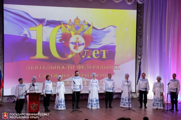 В ходе торжественного мероприятия Глава Республики Крым Сергей Аксёнов и Председатель Государственного Совета Республики Крым Владимир Константинов поздравили служителей Фемиды с 10-летием со дня начала деятельности федеральных судов на территории Крыма и Севастополя.