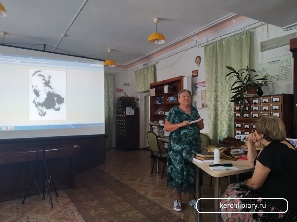 С помощью красочной презентации активная читательница Валерия Ширяева познакомила слушателей с самыми известными его работами - циклами «Русь былинная» и «Кольцо Нибелунга», серией картин о Великой Отечественной войне, графическими портретами, а также с последней работой художника - «Человек с филином».