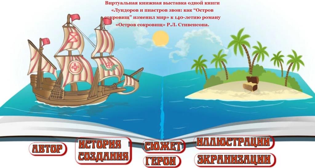 Узнайте больше об острове сокровищ в виртуальной выставке одной книги детской библиотеки №9. Кликайте на картинку!