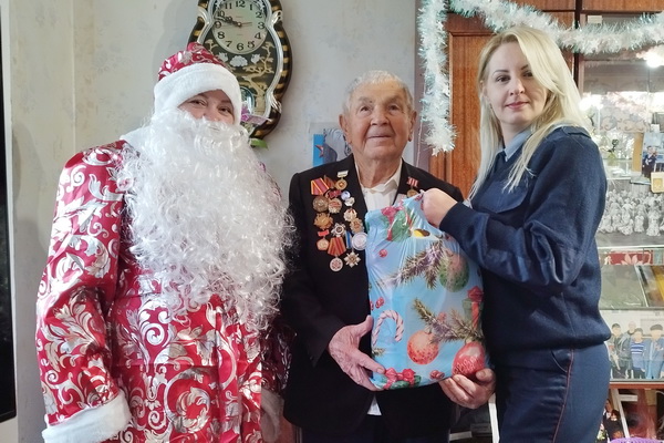 Дед Мороз и сотрудники уголовно-исполнительной инспекции посетили на дому ветерана Великой Отечественной войны Александра Рыженко, выразив ему слова благодарности, теплые пожелания и поздравления с новогодними праздниками, вручили подарок и продуктовый набор.