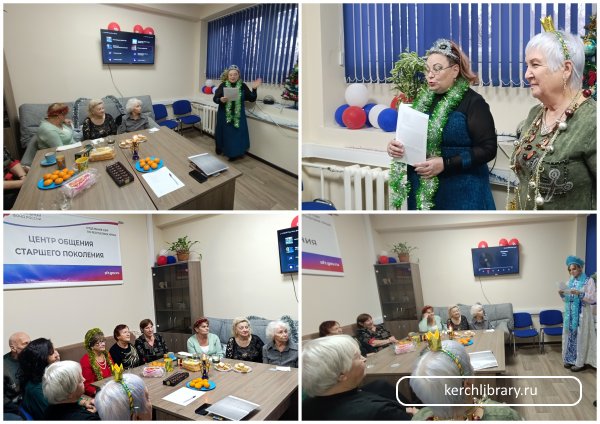 Накануне Нового года в Центре общения старшего поколения в керченском отделении Социального фонда России для пожилых людей заведующая библиотекой-филиалом № 3 им. Н. Островского Ардемасова В. В. провела новогодний вечер «Пусть праздник нам подарит чудо».