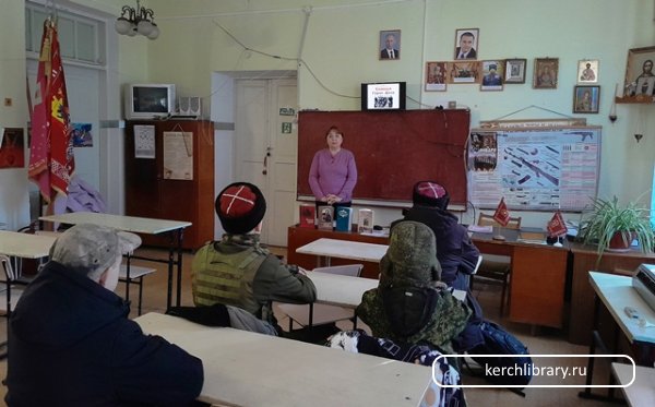 Заведующая библиотекой-филиалом № 6 им. Л. Толстого Ксрау Г. А. для кадетов казачьего военно-патриотического клуба «Грифон» при ГКО «Керчь-Еникальское» провела час истории «455 лет образования Донского казачьего войска». На слайдах презентации «Славные Герои Дона» кадеты узнали многовековую историю служения Отечеству казаков с Дона, их вклад в расширении и охране границ Российской империи, увидели героев Дона от Ермака, С. Разитна и Платова М. до Недорубова К. и участников СВО на Украине.