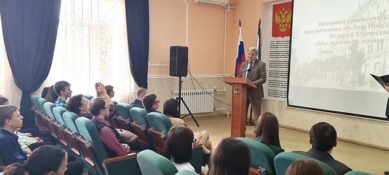 В своей вступительной речи Колюка Н.Н. отметил, что «народы Великой России всегда объединяла общая беда и побуждала их на подвиги в борьбе с врагом и в защите государства», призвал молодежь воспитывать в себе патриотизм, противостоять искажению исторической памяти о подвиге советского народа в годы Великой Отечественной войны.