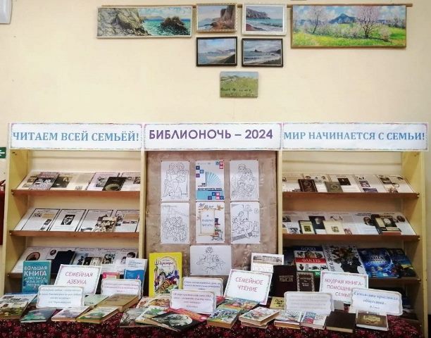В читальном зале Судакской центральной городской библиотеки им.В.П.Рыкова представлена книжная выставка «Мир начинается с семьи!». Выставка оформлена к комплексному мероприятию - Всероссийской акции «Библионочь-2024». Это ежегодная просветительская акция. Главной темой этого года станет семья. Поэтому акция стартует под слоганом «Читаем всей семьёй».