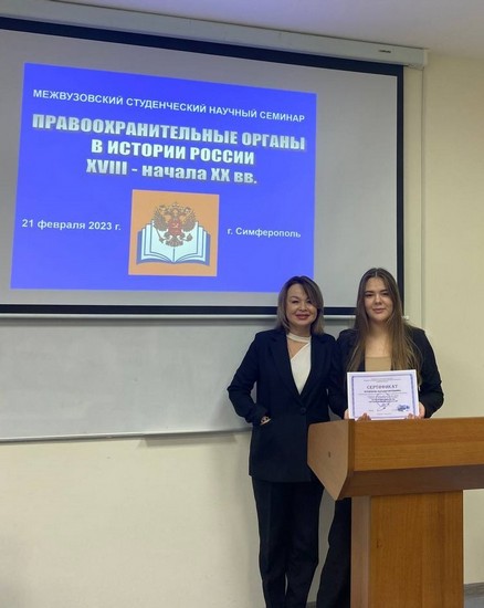 21 февраля 2023 года студенты Института приняли участие в работе Межвузовского студенческого научного семинара «Правоохранительный органы в истории России XVII – начала XX вв.», который состоялся на базе Крымского филиала Российского государственного университета правосудия.