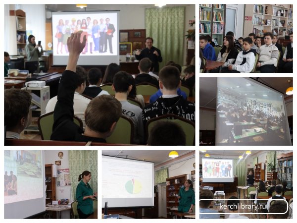 В Центральной детской библиотеке им. В. Дубинина для учащихся старших классов МБОУ г. Керчи РК «Школа №9» организована встреча со специалистом МБОУ г. Керчи РК «Межшкольный учебный комбинат «Профцентр»,