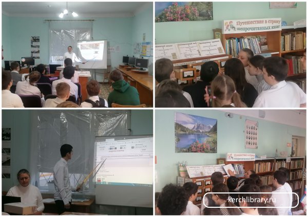 Сотрудник библиотеки Кравченко А. В. рассказала ребятам о сайте Керченской Централизованной Библиотечной системы и об электронном каталоге, с помощью которого легко и просто можно найти любую книгу в библиотеке города. Ребята активно участвовали в электронном поиске книг своих любимых писателей и поэтов.