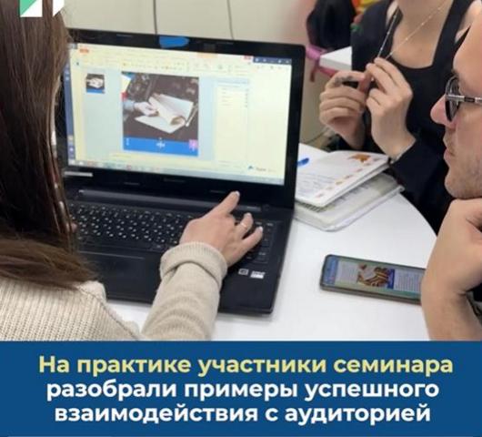 Участники семинара прослушали лекции о том, как работать с контентом в социальных сетях, о продвижении пабликов, виджетах и QR-кодах. Узнали о том, какие бывают типы контента, а также как эффективно проводить прямые эфиры.