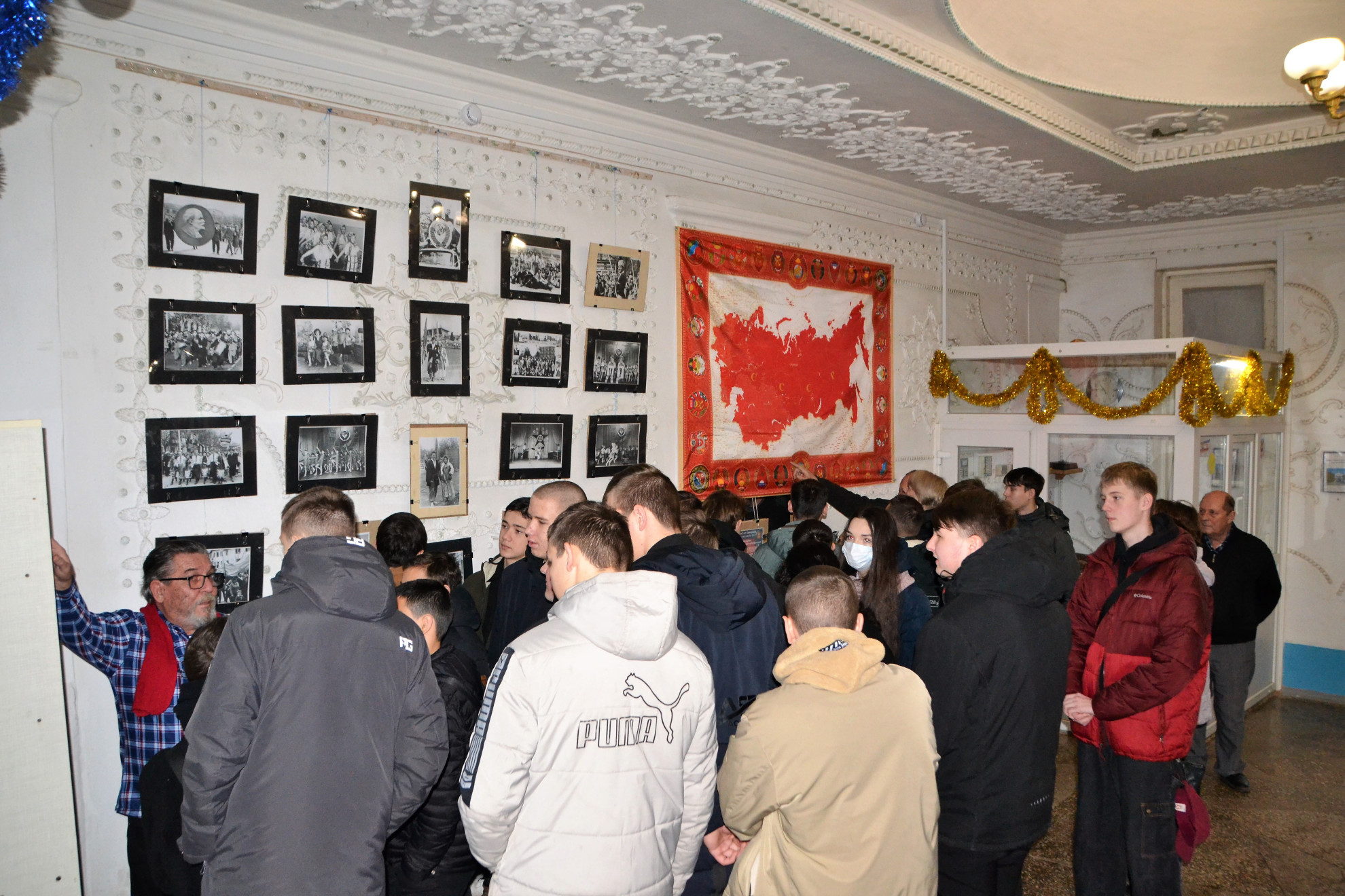 18 января 2023 года студенты 1 курса гр. СКМ(Ф)-112 и СПМ(Ф)-112 посетили музейную выставку «Страна мечтателей…», которая была посвящена 100-летию со дня образования СССР. Выставка была представлена патриотическим клубом «Малая родина» ДК «Бриз» пгт. Приморский г. Феодосии Республики Крым.