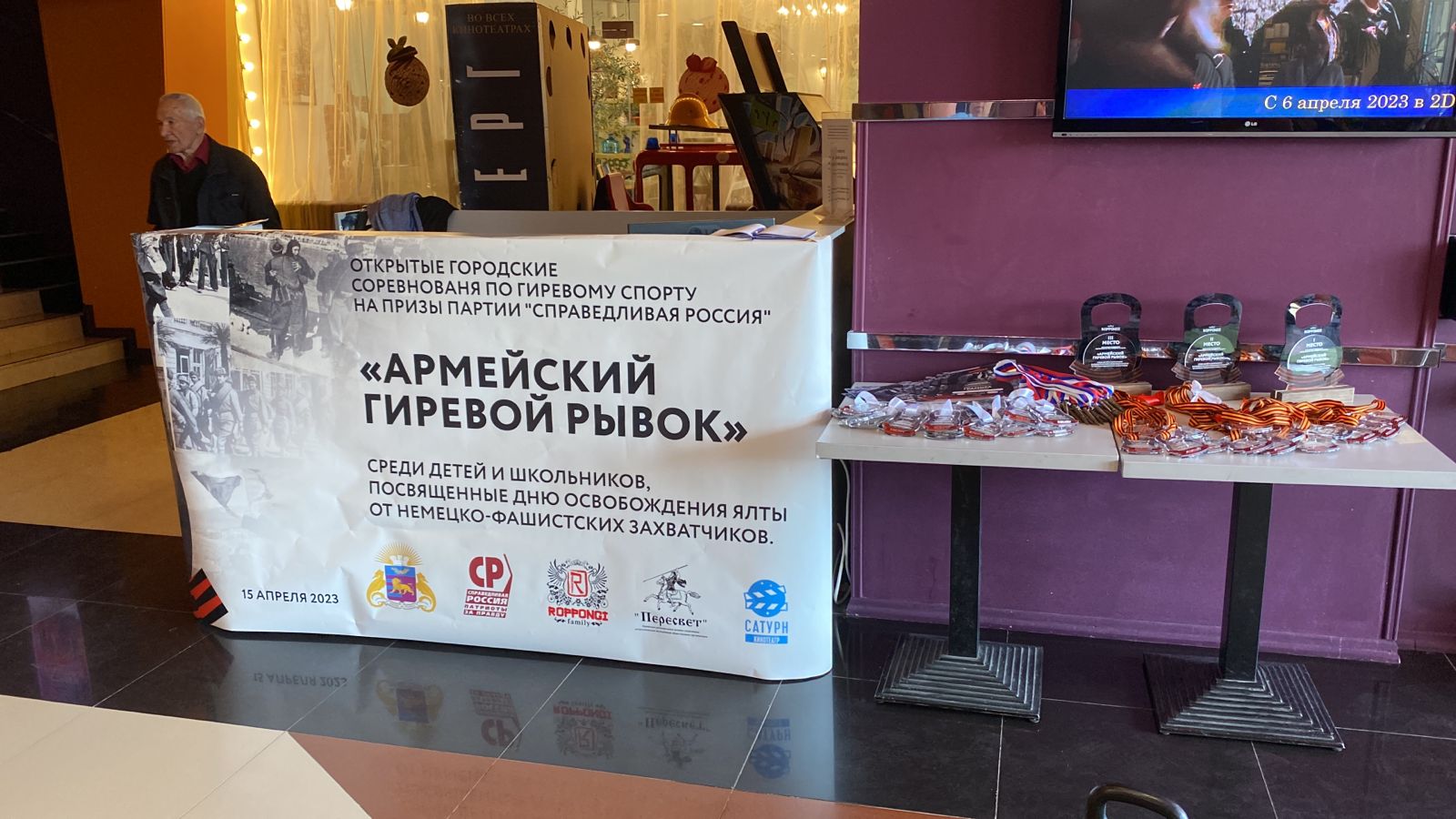 Сегодня в Ялте проходит открытое городское соревнование по гиревому спорту на призы партии " СПРАВЕДЛИВАЯ РОССИЯ – ЗА ПРАВДУ " "Армейский гиревой рывок".