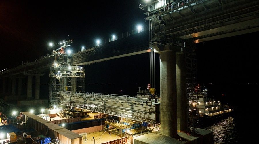 Строители смонтировали первый новый пролет железнодорожной части Крымского моста – Хуснуллин