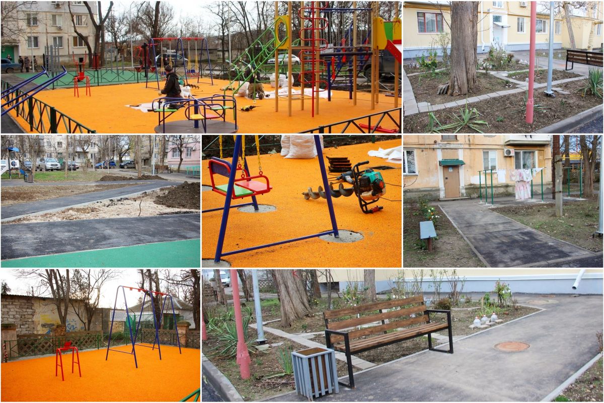 Во дворе многоквартирных домов № 51Б, 53, 53А, 55, 57, 59 уже установили новые лавочки, сделали асфальтовое покрытие дорожек и обновили бордюры. На данный момент рабочие устанавливают детские игровые элементы. Площадки практически готовы к посещению маленькими керчанами.