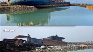 На переработку вывезли более 600 тонн металла. Сейчас демонтируют два последних танка аварийного судна.