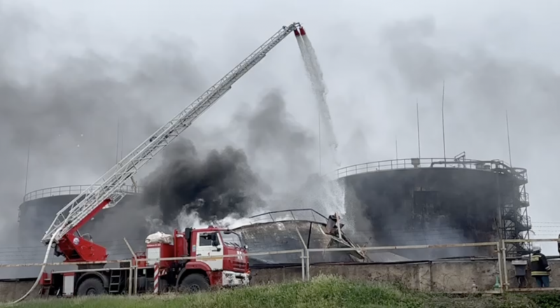 Ранее губернатор Севастополя сообщил, что в микрорайоне Казачья Бухта в Севастополе рано утром 29 апреля загорелись четыре резервуара с топливом, площадь пожара составила около 1000 кв. м, возгорание было локализовано, обошлось без пострадавших. по предварительной информации, причиной стало попадание двух украинских беспилотных летательных аппаратов в резервуары.
