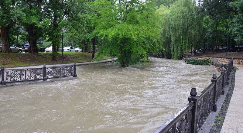Тем не менее жители столицы Крыма сообщали о том, что в Гагаринском парке река затопила часть пешеходных дорожек и небольшой мост.