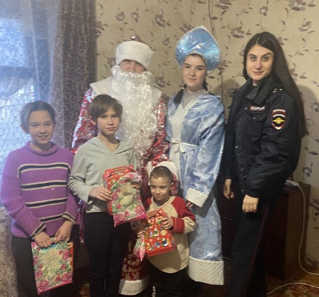 В рамках Всероссийской акции «Полицейский Дед Мороз» сотрудники ОМВД России по Советскому району превратились в главных новогодних персонажей и поздравили с Новым годом многодетные семьи,