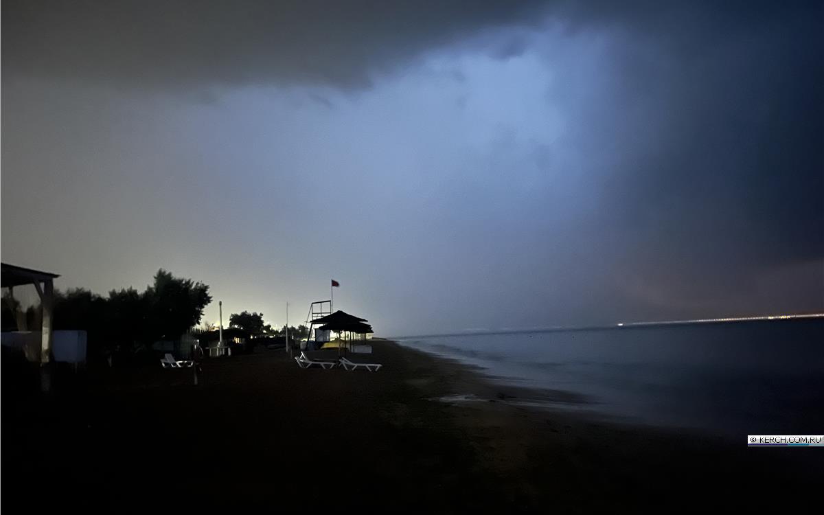 Над Керчью бушевала гроза: молнии, не переставая, освещали горизонт, небо клокотало. Со стороны городского пляжа была видна необузданная мощь стихии на фоне Крымского моста. Посмотрите: