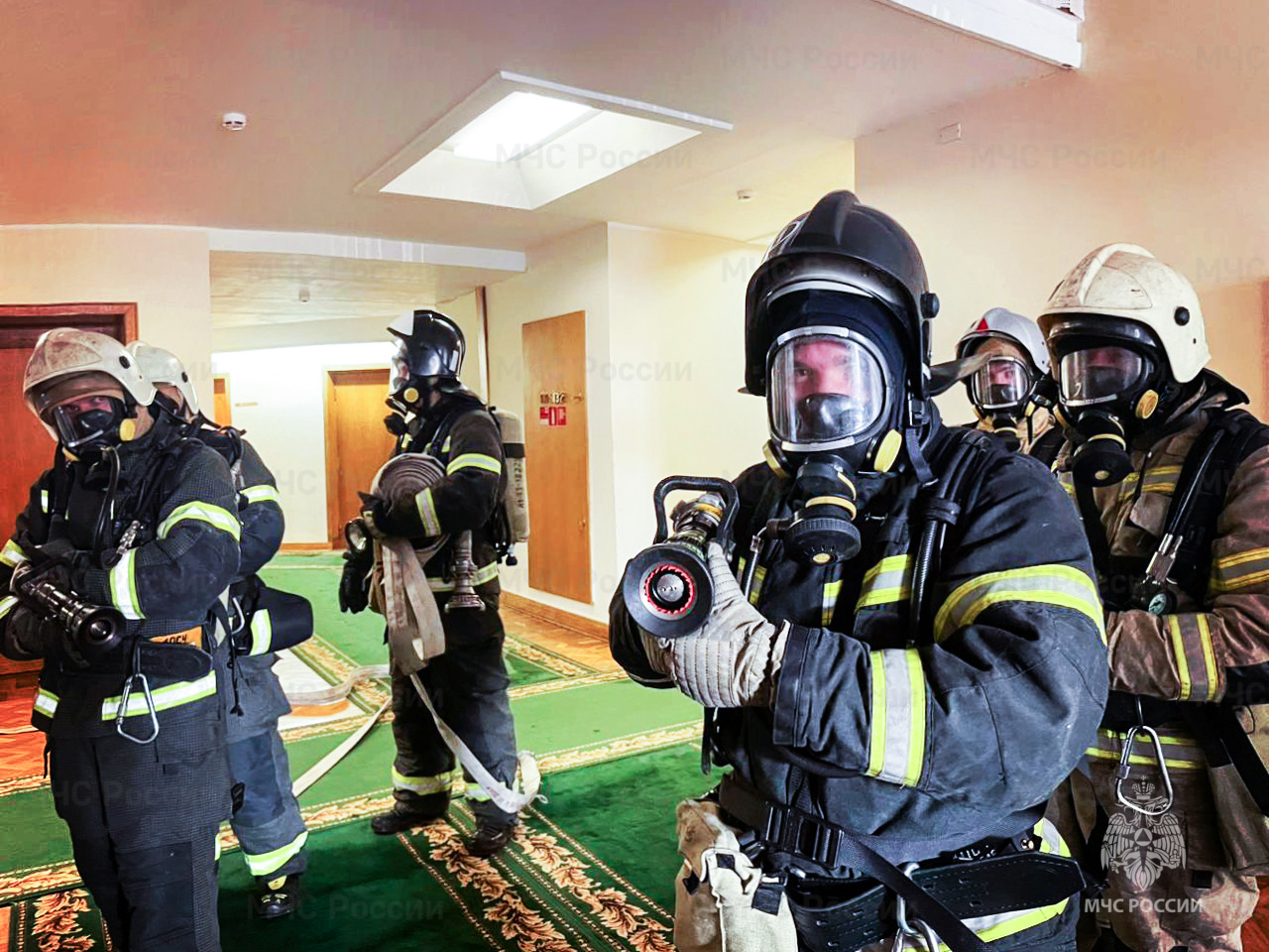 Согласно тактическому замыслу, условное возгорание произошло на первом этаже. Пожару был присвоен самый высокий ранг сложности, предусмотренный для подобных объектов.