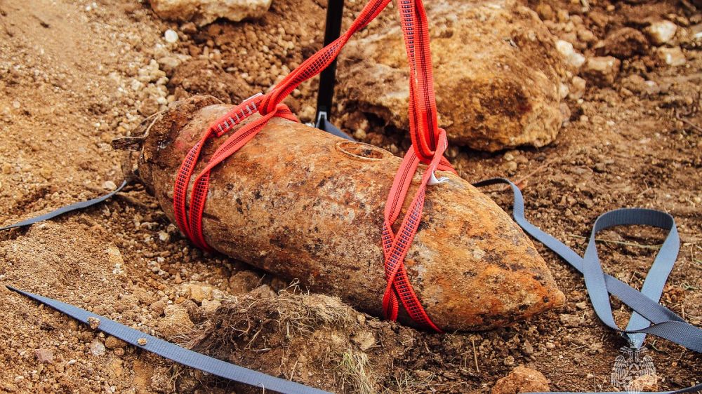 Севастопольские пиротехники МЧС России ликвидировали немецкую авиабомбу SD-50 времен Великой Отечественной на месте обнаружения, то есть на территории садоводческого товарищества.