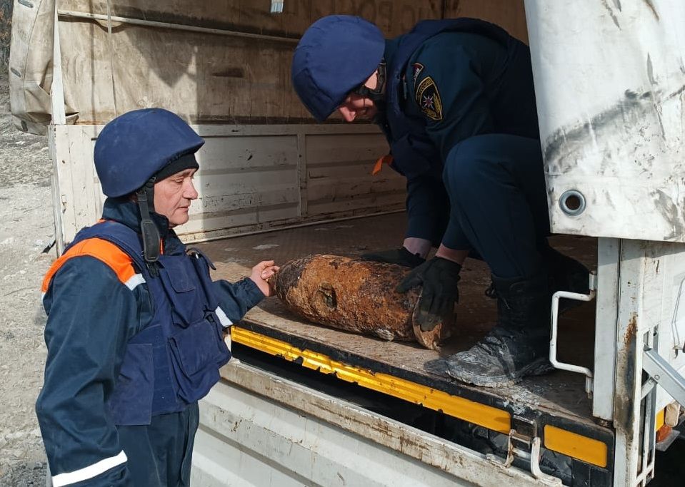 «Пиротехники МЧС России погрузили находку на борт спецавтомобиля и транспортировали на полигон. Там бомбу ликвидировали путем контролируемого подрыва», — говорится в сообщении.