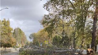 По улице Орджоникидзе ветер повалил старый тополь. Ствол упал прямо на проезжую часть.