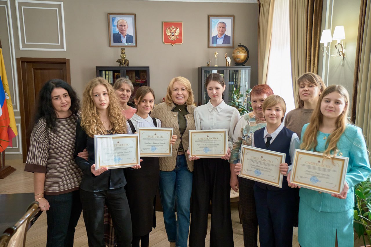 Глава администрации Ялты Янина Павленко вручила юным ялтинцам заслуженные награды. Стипендия в размере трех тысяч рублей назначается на один год пяти юным музыкантам и художникам за успехи в сфере искусства. Впервые она была учреждена и выплачена в 2024 году.
