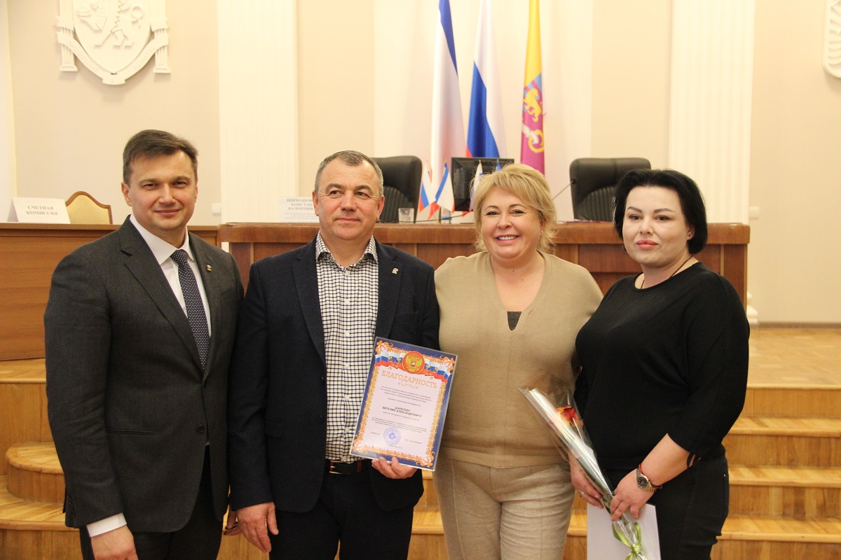 Перед началом заседания Глава муниципального образования городской округ Ялта – председатель Ялтинского городского совета Константин Шимановский и глава администрации города Ялта Янина Павленко провели церемонию награждения. Грамотой Президиума Государственного Совета Республики Крым с вручением нагрудного знака награжден кандидат технических наук, начальник отдела технологического контроля ПАО «Массандра» Сергей Задорожный.