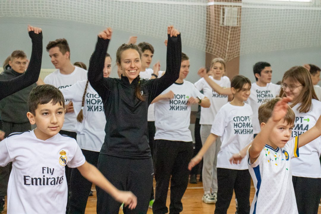 Министр спорта показала упражнения для эффективного разогрева мышц и призвала ребят делать зарядку ежедневно.