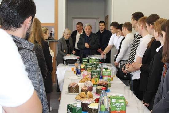 К праздничному столу были приглашены преподаватели и студенты Института, которые смогли попробовать плов, пасхальные куличи и сладости.