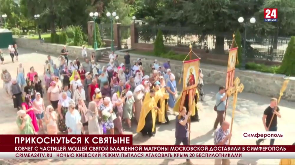 Ковчег с частицей мощей святой блаженной Матроны Московской доставили в Симферополь. До 19 августа он пробудет в Александро-Невском кафедральном соборе, а затем отправится в другие храмы епархии. Во время пребывания в Крыму перед ковчегом будут совершаться акафисты – особые хвалебные песнопения, в которых подробно рассказывается о жизни святой. Матрона Московская родилась в 1881 году в Тульской губернии совершенно слепой. Но вскоре у неё открылся дар предвидения и исцеления. За советом, наставлением и избавлением от болезней к Матроне съезжались люди со всех концов страны. Православные верят, что мощи этой святой обладают огромной целительной силой.