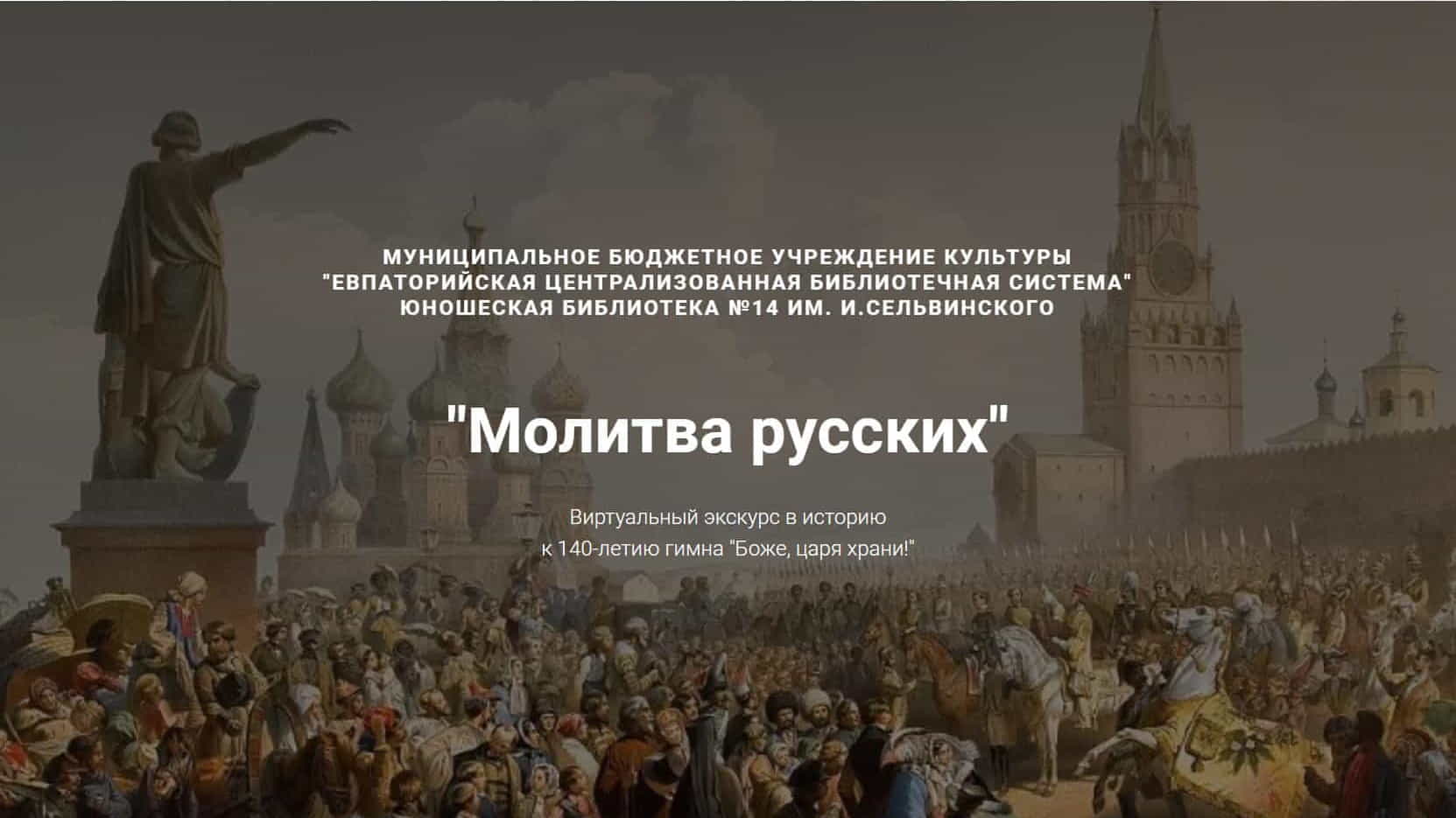 Юношеская библиотека им. И. Сельвинского к 140‑летию гимна «Боже, царя храни!» подготовила виртуальный экскурс в историю «Молитва русских». Кликайте на картинку!