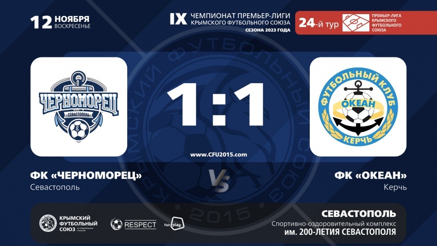 12 ноября 2023 года. Севастополь. СОК им. 200-летия Севастополя. 1500 зрителей. Оценка поля – 3. Чемпионат Премьер-лиги Крымского футбольного союза (сезон 2023). 24-й тур