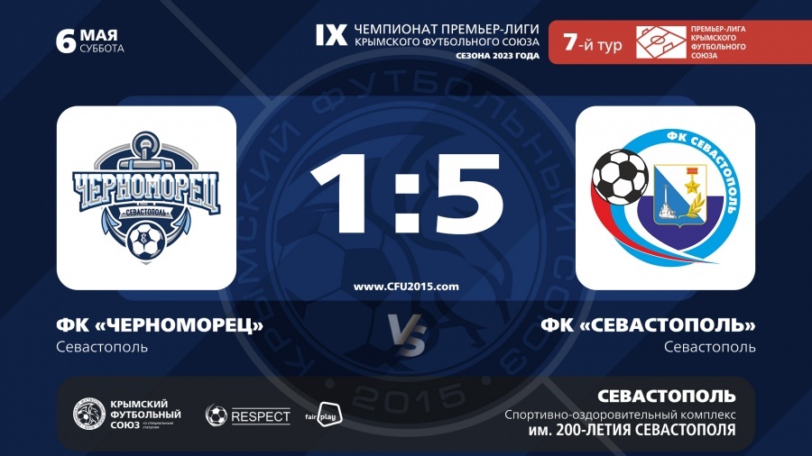 6 мая 2023 года. Севастополь. СОК им. 200-летия Севастополя. 1800 зрителей. Оценка поля – 4. Чемпионат Премьер-лиги Крымского футбольного союза (сезон 2023). 7-й тур