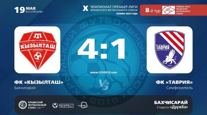 Итог матча Пресс-служба "Кызылташ" – "Таврия" – 4:1 19 мая 2024 года.