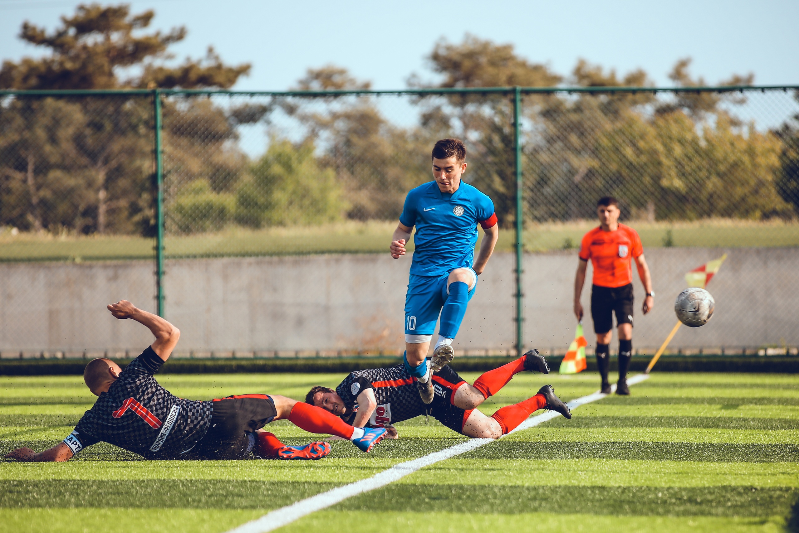 Лидер чемпионата Феодосийская «ГВАРДИЯ» крупно уступила на выезде «Академии футбола Крыма». В самом дебюте встречи на 2-й минуте Адриан Платон реализовал выход «один на один» — 1:0. Еще до перерыва гости пытались сравнять счет, но здорово дейстовала оборона «академиков». А в конце первого тайма Роман Исаев оформил дубль, на 44-й и 45-й минуте блестяще реализовал свои моменты — 3:0. Во втором тайме «ГВАРДИЯ» безуспешно пыталась сравнять счет. Оборона хозяев отыграла на твердую пятерку. Уверенная победа «Академии футбола Крыма» — 3:0.