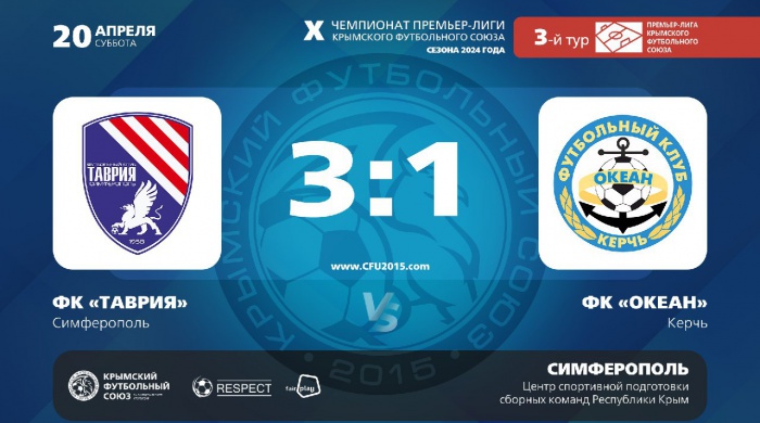 Итог матча Пресс-служба "Таврия" – "Океан" – 3:1 20 апреля 2024 года.