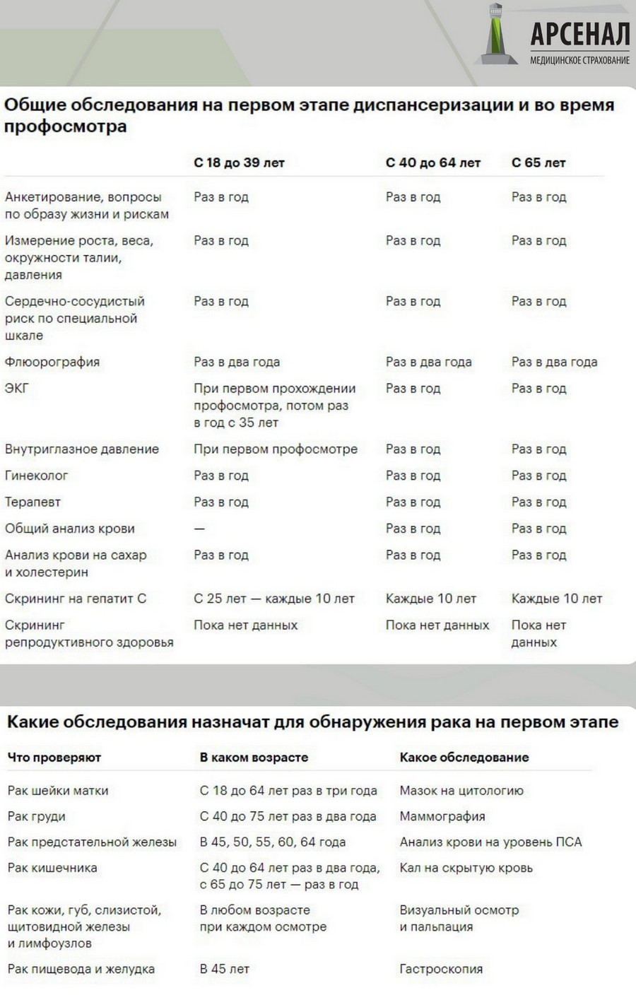 В те возрастные периоды, которые не попадают под диспансеризацию, можно проходить п рофилактический осмотр ежегодно. В него входит немного меньше обследований, но проходить его тоже очень важно!