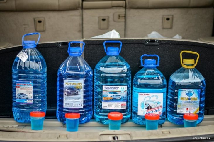 В современных стеклоомывающих жидкостях добросовестные производители используют изопропиловый спирт, пропиленгликоли, этиленгликоли.