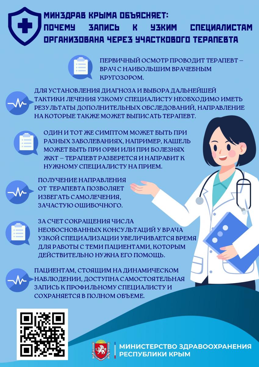 Минздрав Крыма объясняет: почему запись к врачам узкой специализации организована через участкового терапевта