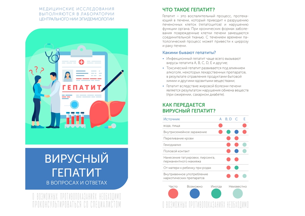 Памятка о «Вирусном гепатите в вопросах и ответах», разработанная Федеральной службой по надзору в сфере защиты прав потребителей и благополучия человека совместно с ФБУН «Центральный НИИ эпидемиологии» Роспотребнадзора.
