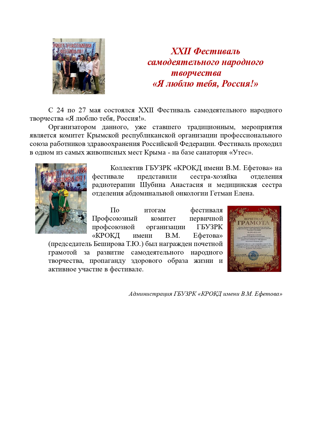 XXII Фестиваль самодеятельного народного творчества «Я люблю тебя, Россия!»
