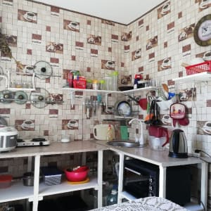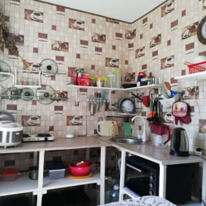 В квартире есть - кондиционер, печка, плита, чайник, мультиварка, стиральная машина, вода греется бойлером.