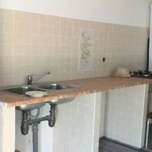 5. Кухня с мойкой, холодильником, электроплитой, стиральной машиной.